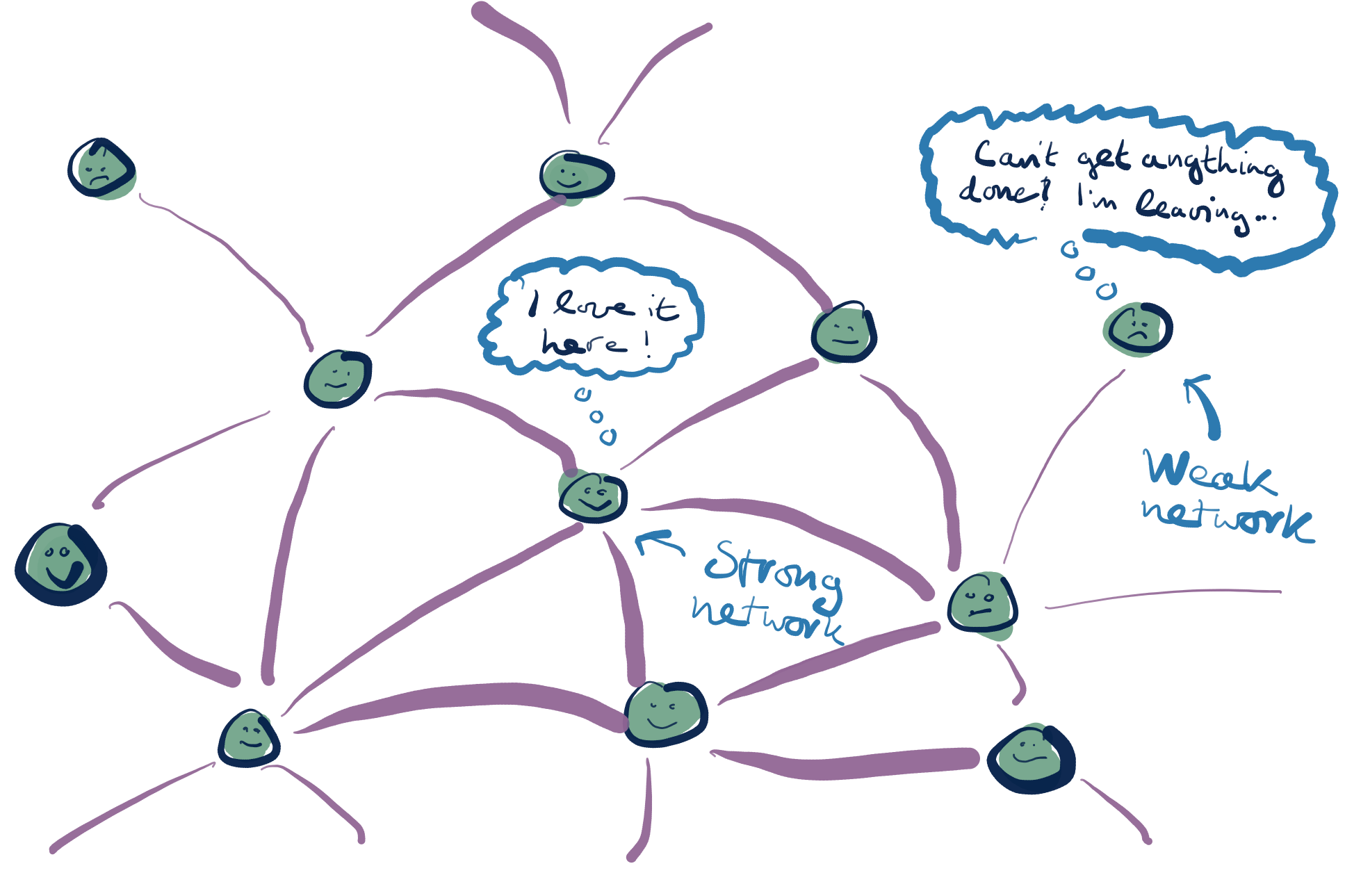 Employees with a strong social network within their organisation perform better in all aspects of work: